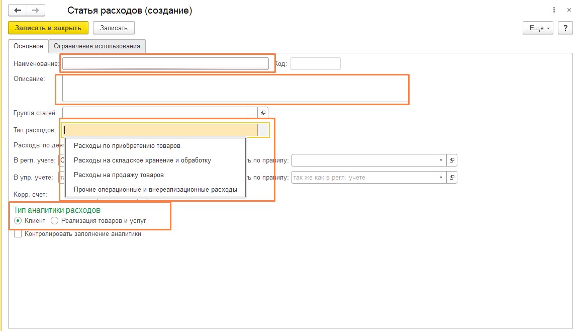 Настройка статей расходов в 1С Комплексная автоматизация 2 и ERP