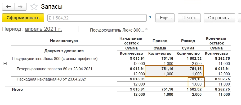 Резервирование запасов в 1С:УНФ