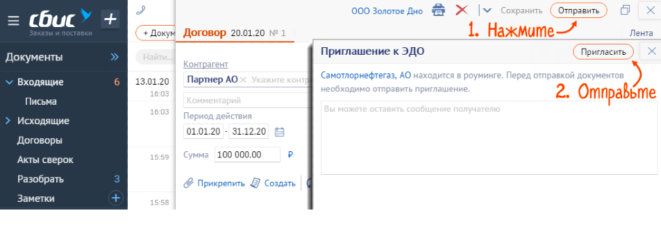 СБИС ЭДО отправка документов (в том числе и роуминг)