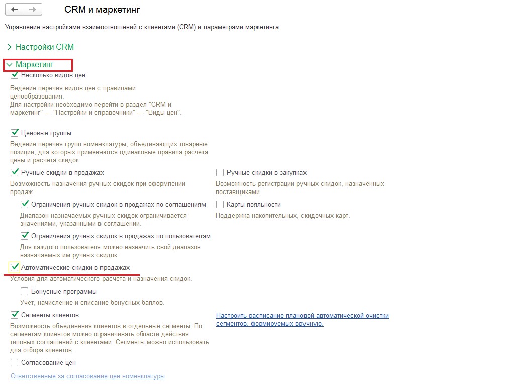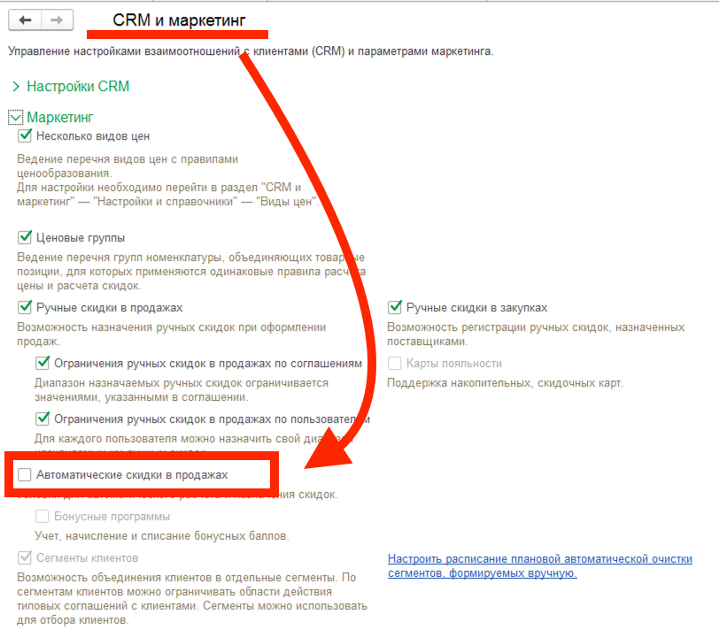 Розница 1С 2.2 - Виды скидок. Их включение. Права для ручных скидок