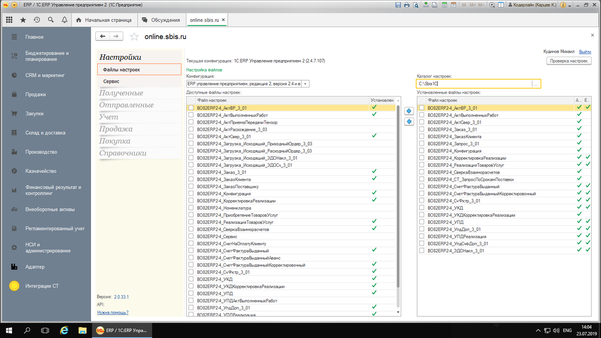 Инструкция по работе с модулем 1С в СБИС