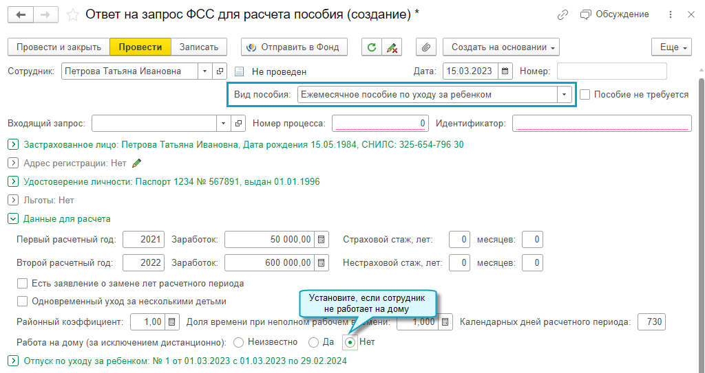 СЭДО ФСС в 1С: Бухгалтерия — как быть, если пособие сотруднику не положено