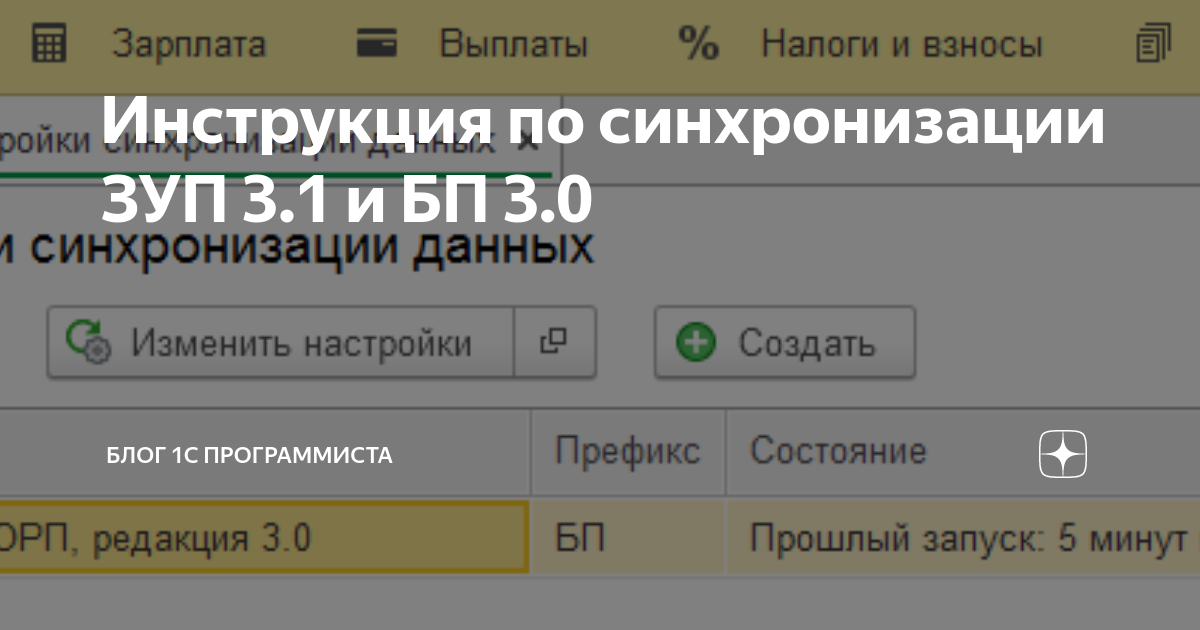 Настройка синхронизации 1С БП 3.0 и ЗУП 3.1