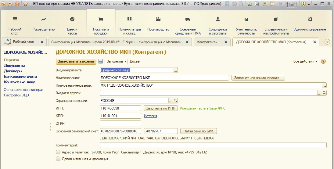 Синхронизация данных с 1С Fresh
