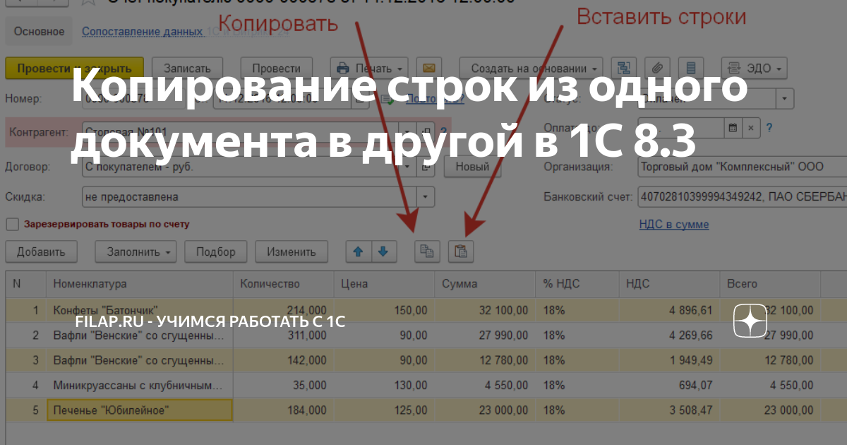 Как копировать строки в документах в 1С:Бухгалтерия 8.3 - Микос Программы 1С