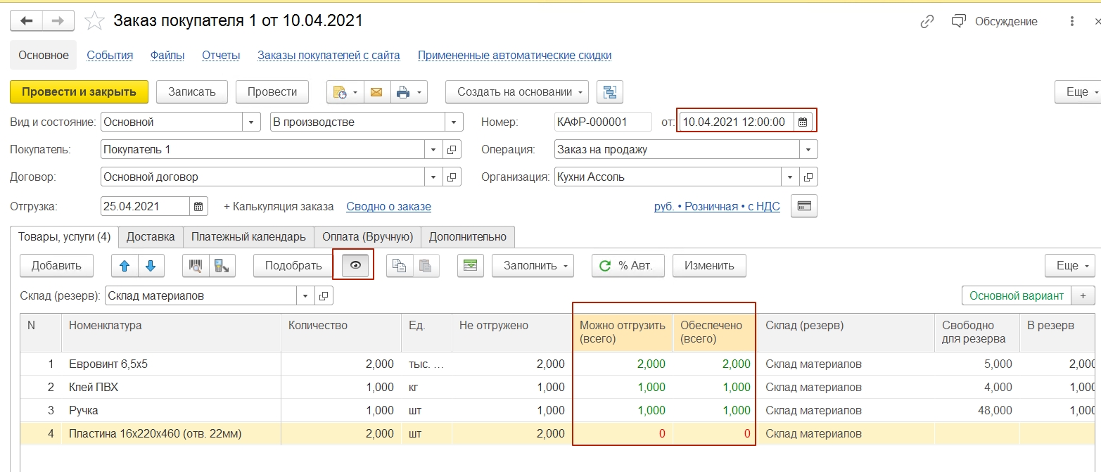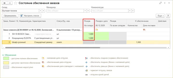 Резервирование запасов в 1С:УНФ