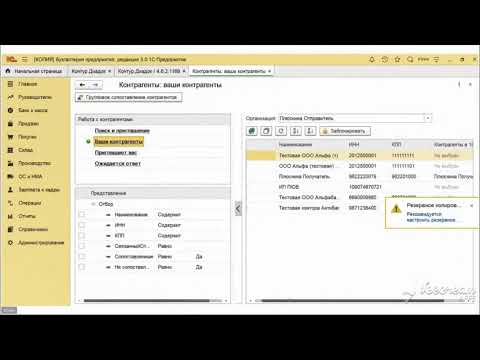 При начале работы сопоставления контрагентов, убедитесь в том, что база данных в 1С и Диадоке актуальна и обновлена.
