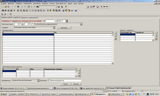Справка о заработке для расчета пособий в 1С:Бухгалтерия предприятия