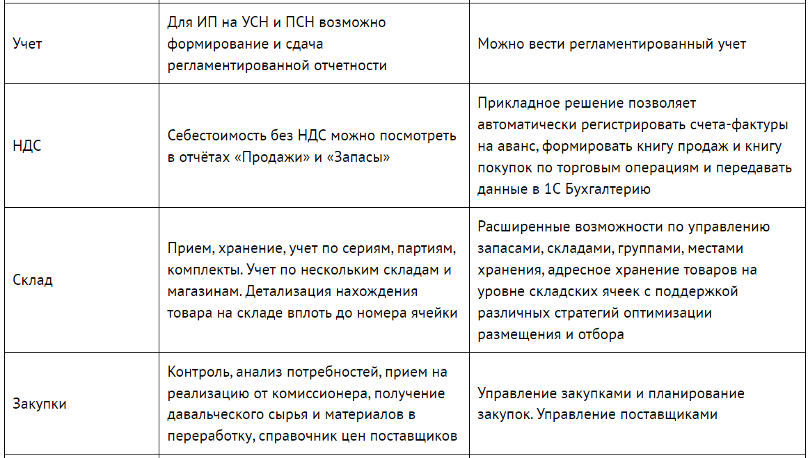 Комплексная Автоматизация►Сравнение с 1С Управление торговлей►1С Бухгалтерия ►Кому подойдет???