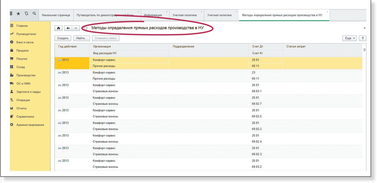 Простая настройка прямых затрат в налоговом учете в 1С:Бухгалтерии 8