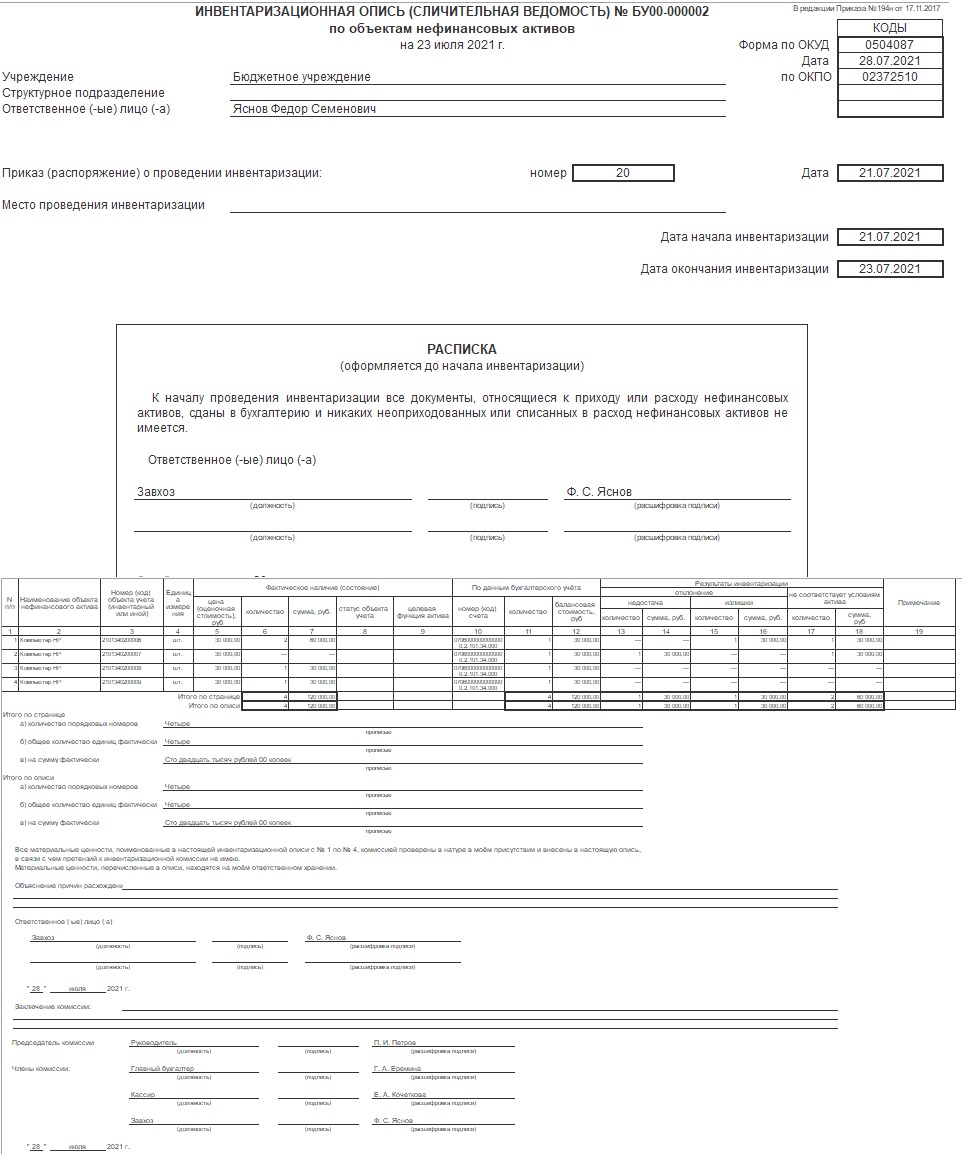 Статус объекта учета в инвентаризационной описи играет важную роль при проведении инвентаризации и контроля за наличием активов в организации. Корректное оформление статуса помогает избежать ошибок и упрощает учетные процедуры.