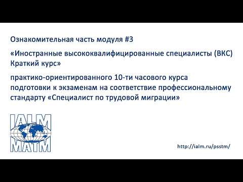 Ознакомительная часть модуля 3. Иностранные высококвалифицированные специалисты (ВКС)