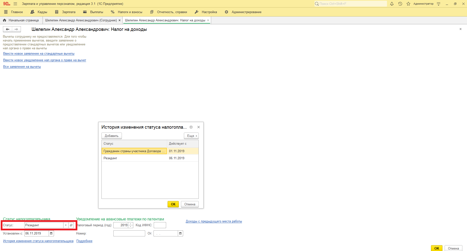 Страховой и налоговый статус иностранцев в 1С:ЗУП 8