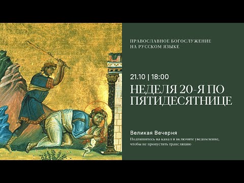 Вечерня на русском языке. Неделя 20-я по Пятидесятнице. 21 октября 2023