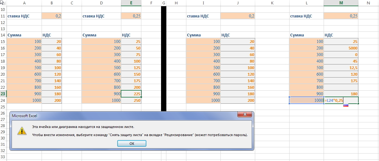 Формула расчета НДС в Excel