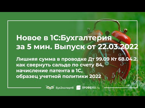 Учетная политика 2022, лишняя сумма в проводке Дт 99.09 Кт 68.04.2, сальдо по счету 84, патент в 1С