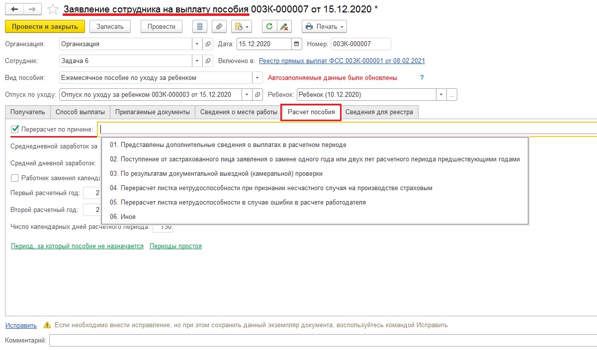 Доработки и проверки для выгрузки реестра прямых выплат ФСС в формате 1.7.7
