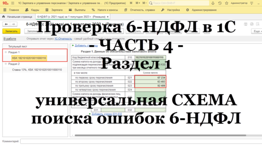 Заполнение 6-НДФЛ в 1С Бухгалтерия за 1 квартал 2023г. Проверка и исправление ошибок по НДФЛ
