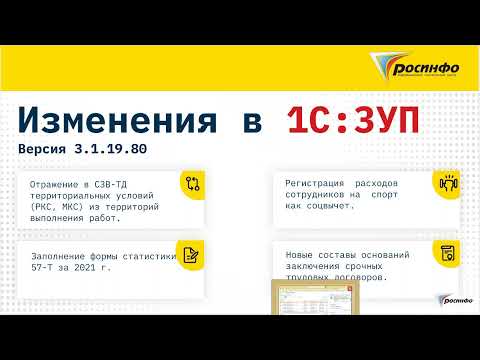 Изменения в 1С:ЗУП версия 3.1.19.80