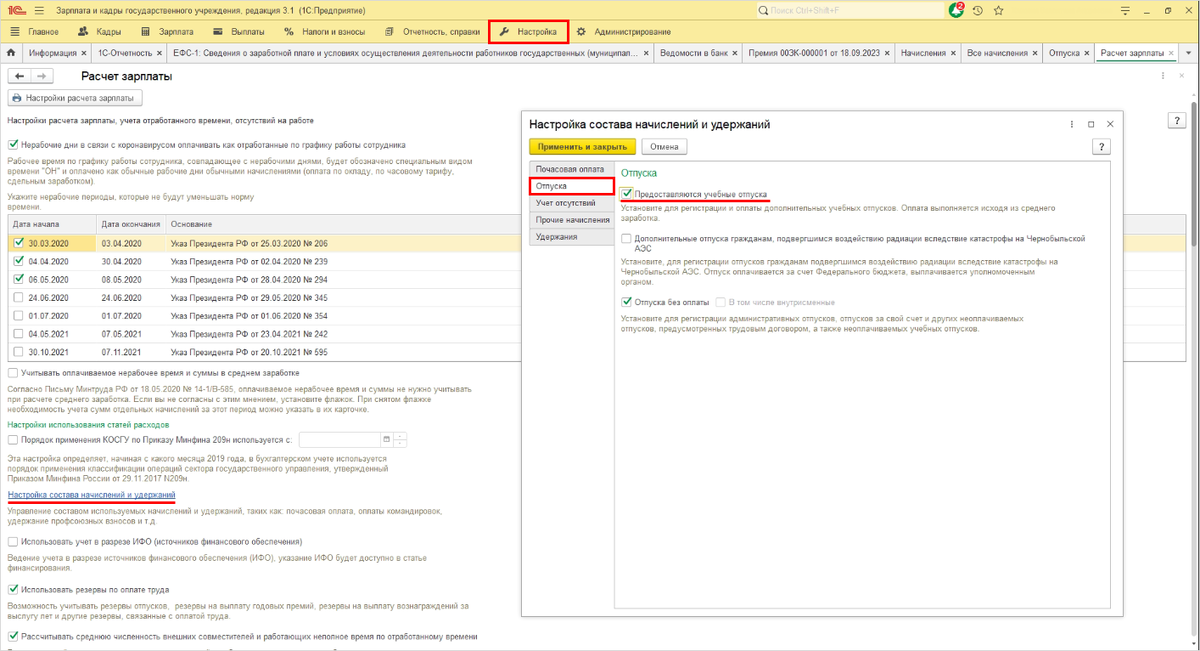 Учебный отпуск в 1С:ЗУП 3.1