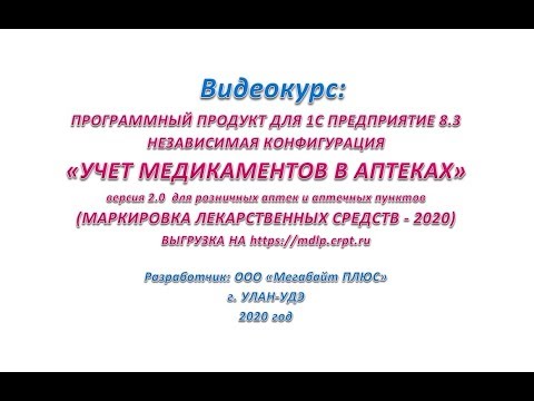 Видеокурс ПРОГРАММНЫЙ ПРОДУКТ ДЛЯ 1С ПРЕДПРИЯТИЕ 8.3 «УЧЕТ МЕДИКАМЕНТОВ В АПТЕКАХ» версия 2.0