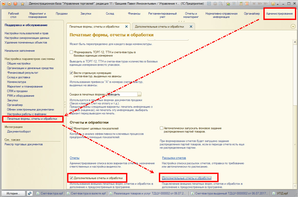 1C УТ 11.4: выгрузка УПД в формате xml из 1С на компьютер через модуль интеграции Диадок
