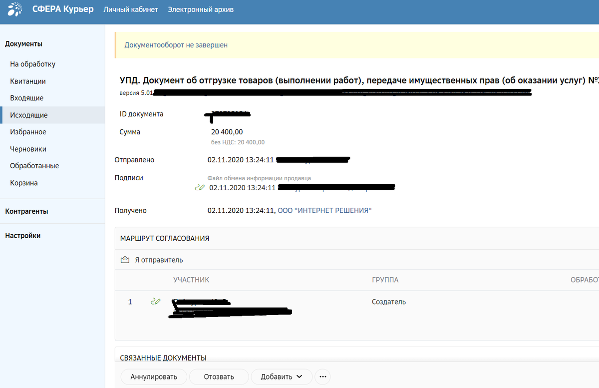 Отправка УПД2 сформированного в формате XML в озон через Сфера-Курьер Инструкция