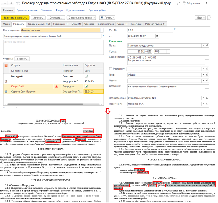 09.07 - Управление договорами в 1С:Документооборот - Карточка договора, стороны и сроки - отрывок