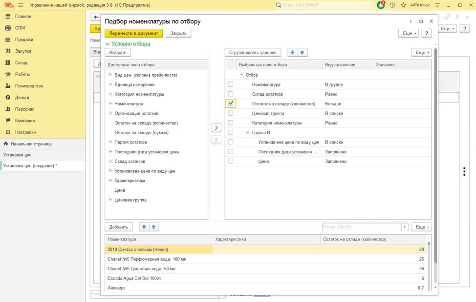 Создаем номенклатуры в 1С: Управление нашей фирмой