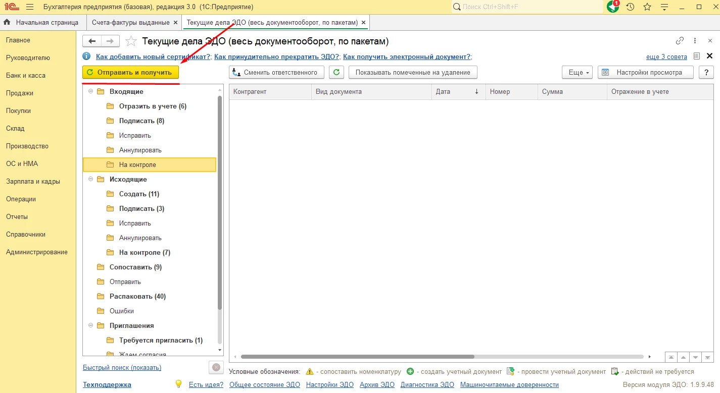 Отправка электронных документов в 1С-ЭДО