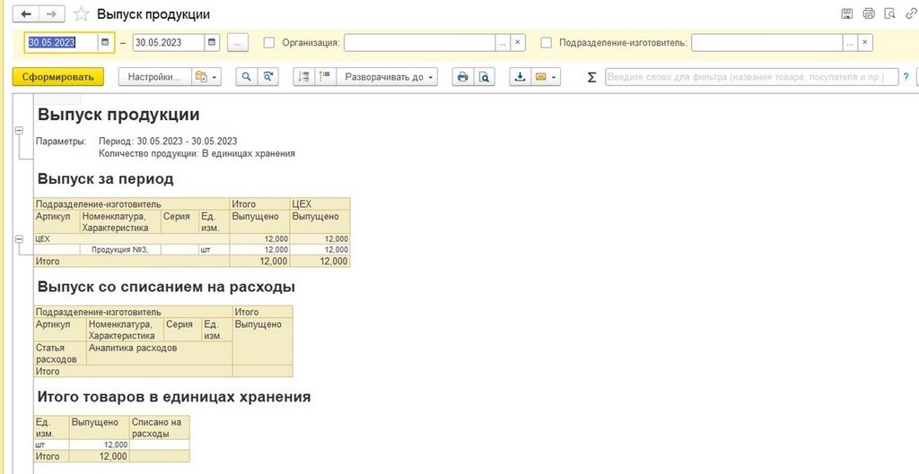 Выпуск полуфабрикатов в 1С Комплексной 2