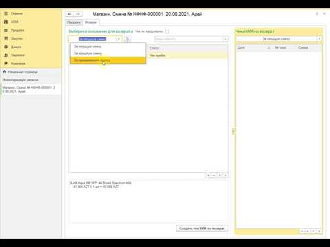 Возврат товара в 1С УНФ в РМК за прошлую смену или прошлый период