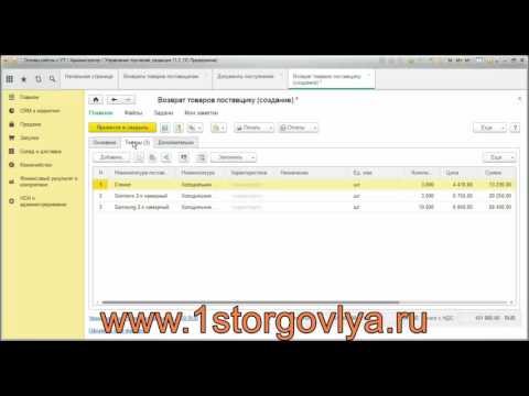 Возврат товара поставщику в программе 1С Управление торговлей 11.2