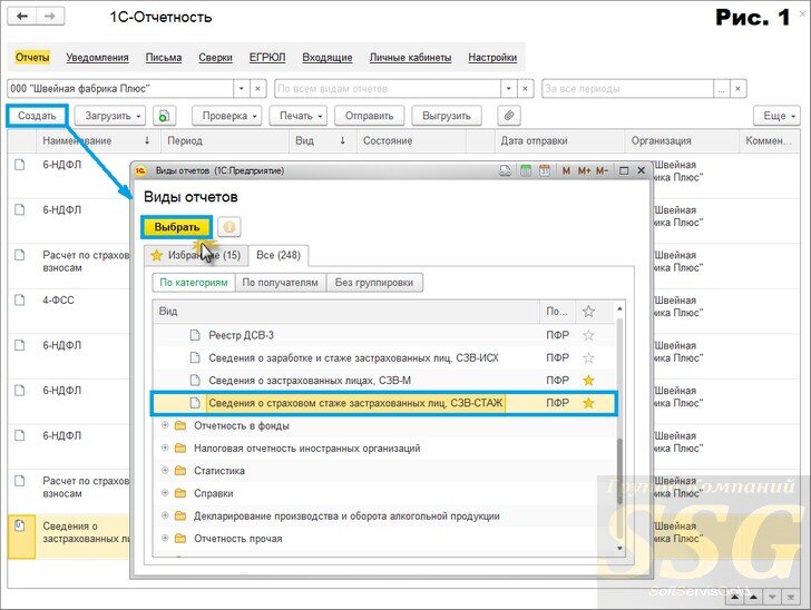 Отчет СЗВ-СТАЖ в 1С