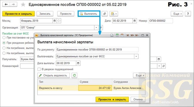 1С. Создание и отправка в ФСС пособия при рождении ребенка