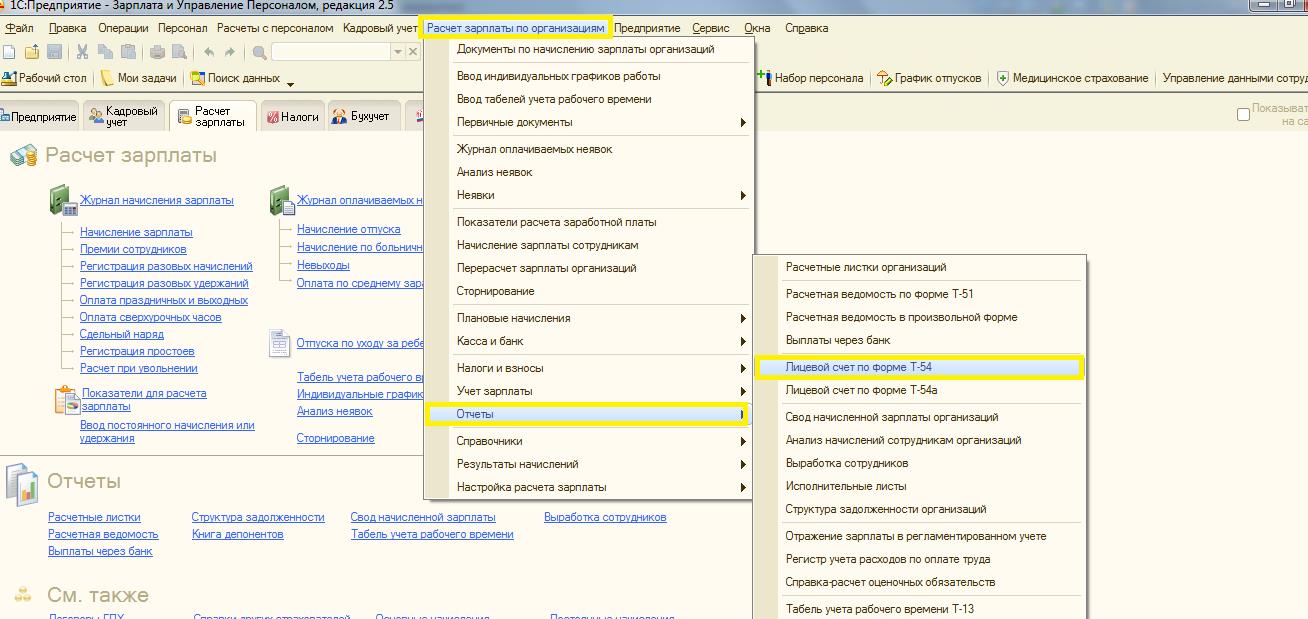 ЗУП 30, отчет Личные карточки сотрудников (Т-2)
