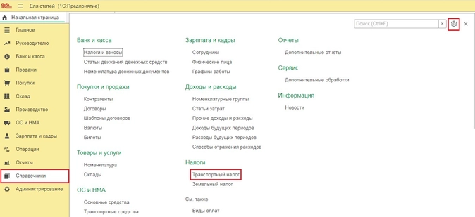 Транспортный налог в 1С