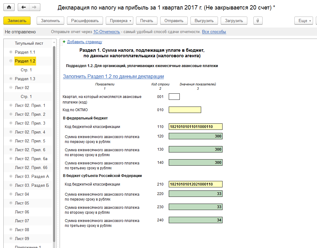 Заполнение и проверка декларации по налогу на прибыль в 1С: Бухгалтерии