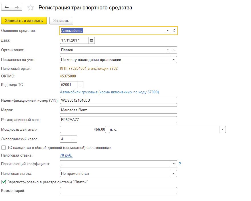 Расчет и начисление транспортного налога в 1С:Бухгалтерия