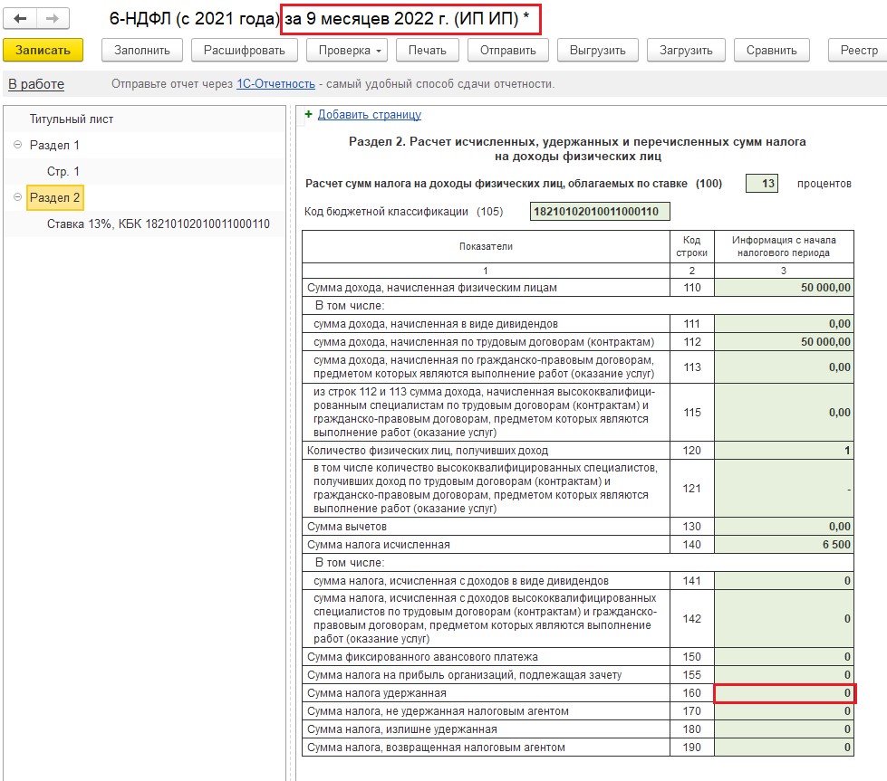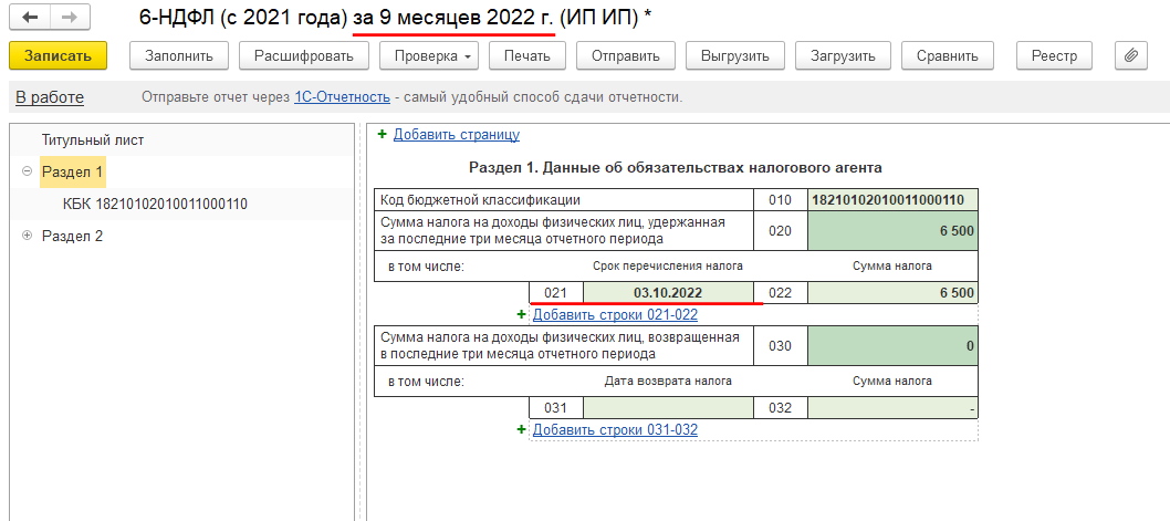 Проверка РАЗДЕЛА 1 отчета 6-НДФЛ (с 2021 года) в 1С: сверка удержанного НДФЛ с перечисленным