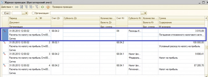 Операции по ЕНС. Налог на прибыль к уменьшению проводки в 1С 8.3