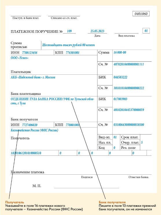 Новые реквизиты с 2021 года при оплате налогов и взносов