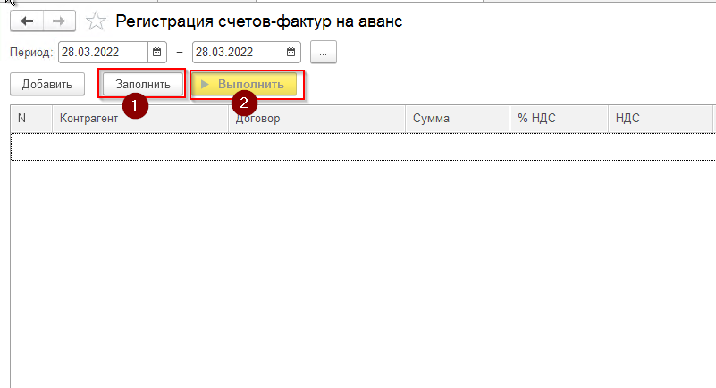 Регистрация счетов-фактур на аванс