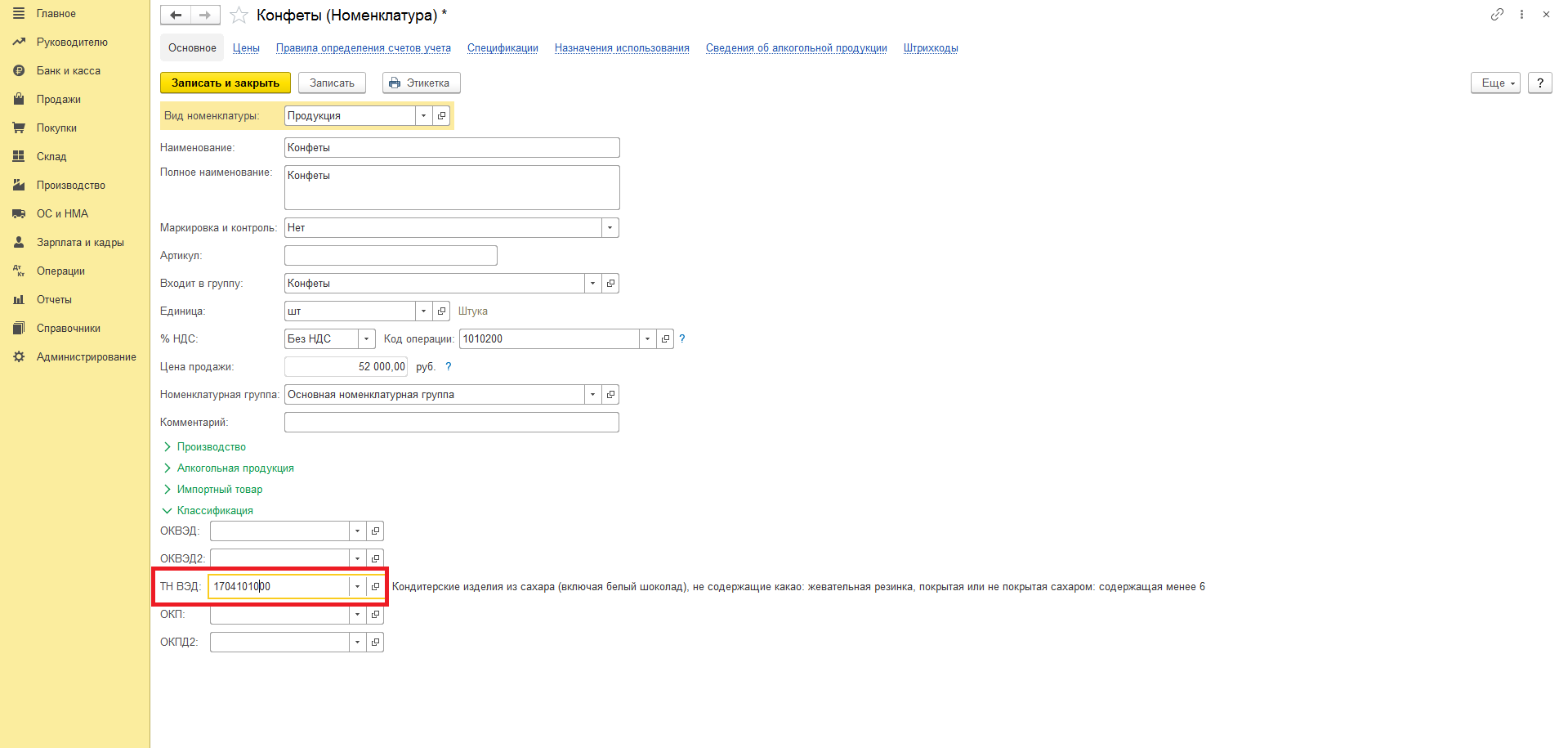 Заполнение кодов ТН ВЭД по новому в 1С