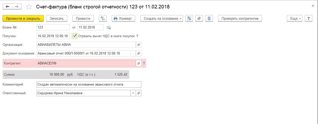 Счет-фактура на аванс в 1С 8.3 Бухгалтерия