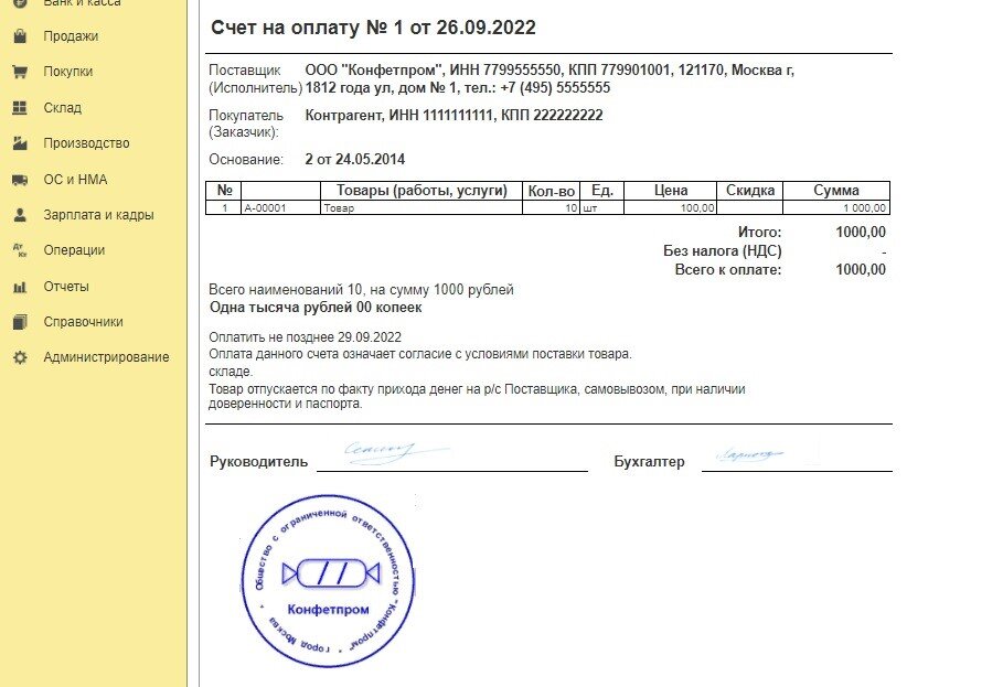Подпись и печать в счете в 1С: быстрый и простой способ добавления