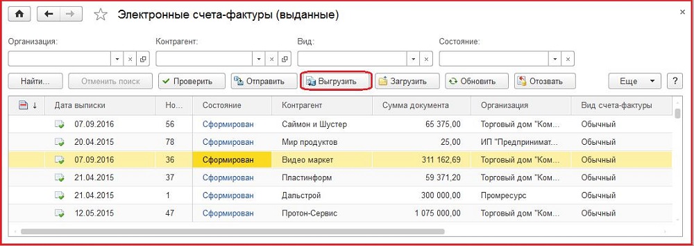 При выгрузке счет-фактуры используйте ключевые слова и описательные данные, чтобы обеспечить полноту и точность информации.