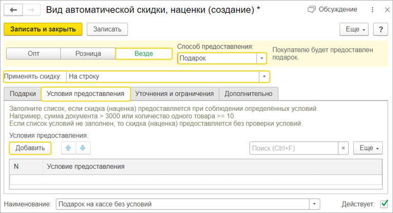 Не забывайте указывать скидки или акции в счете, если они доступны для данного клиента или сделки.