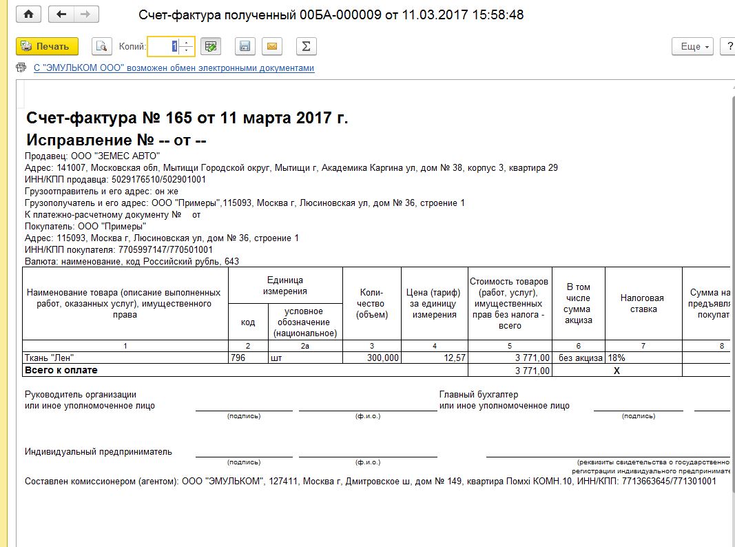 Как сделать счет фактуру в 1С
