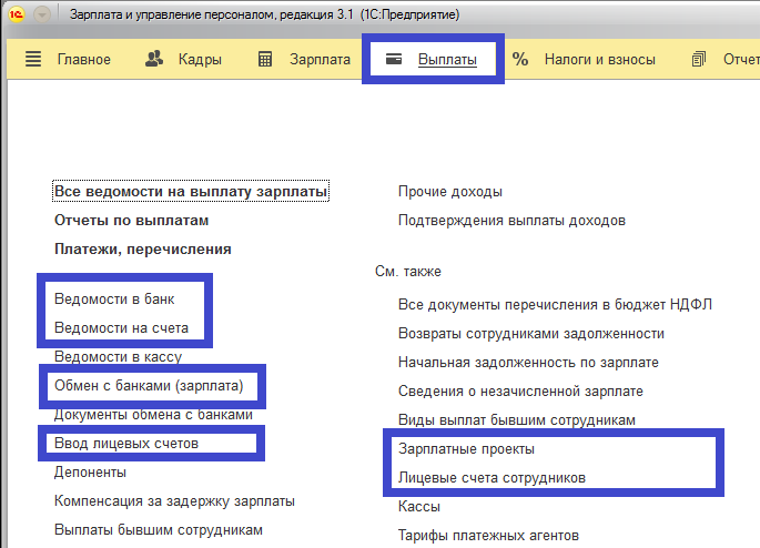 Как создать в 1С лицевые счета сотрудников (зарплатный проект)